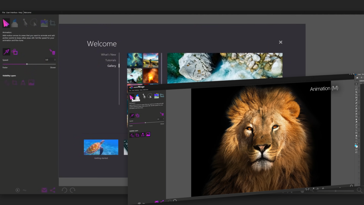 Videoanimationen sind in der Werbung und in den sozialen Medien nichts Neues. Allerdings sind die meisten Tools nicht gerade benutzerfreundlich und zu komplex. PhotoMirage ist anders. Mit der Software können Sie auf unkompliziertem Wege einzelne oder mehrere Teile eines Standfotos animieren. Das Programm akzeptiert JPEG-, TIFF-, GIF-, PNG-, BMP- und sogar RAW-Bilder von über 450 Kameramodellen als Ausgangspunkt. Exportoptionen sind MP4 (H.264), MP4 (HEVC), WMV und animiertes GIF.